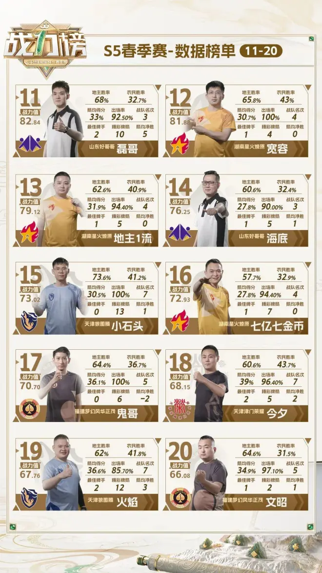 ——S5春季赛战力榜1-20名全部公布——