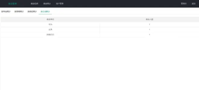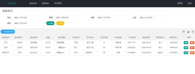 主要解决了各大高校统计应届毕业生就业的问题,功能包括:登录,就业信息管理,就业统计管理,用户管理,就业信息管理中包含了专业,岗位,企业等多个搜索条件
