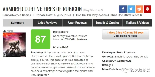 但凭借FS社多年积攒下来的人气,以及众多机甲爱好者的追捧,《装甲核心6》依然获得了不俗的评价,并收获了一大波系列新玩家。不知道过足了机甲瘾的FS社,下一个作品又会选择怎样的题材呢?