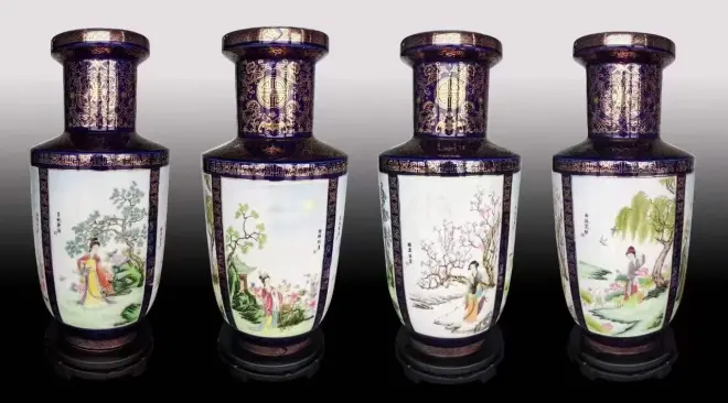 《古典四美》粉彩霁蓝金尊瓶王锡良王采大师创作四大美女霁蓝描金金钟瓶