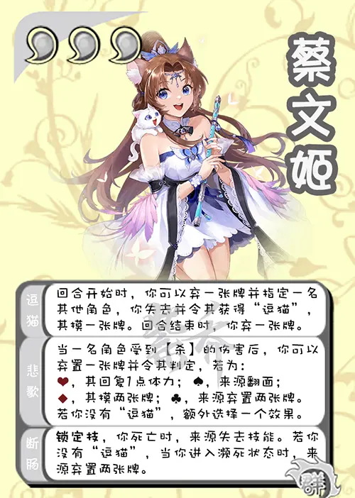 3、没有逗猫则秘计X为你自选角色的已损体,约等于场上最大的已损体,不晓得为什么要加个选择流程x