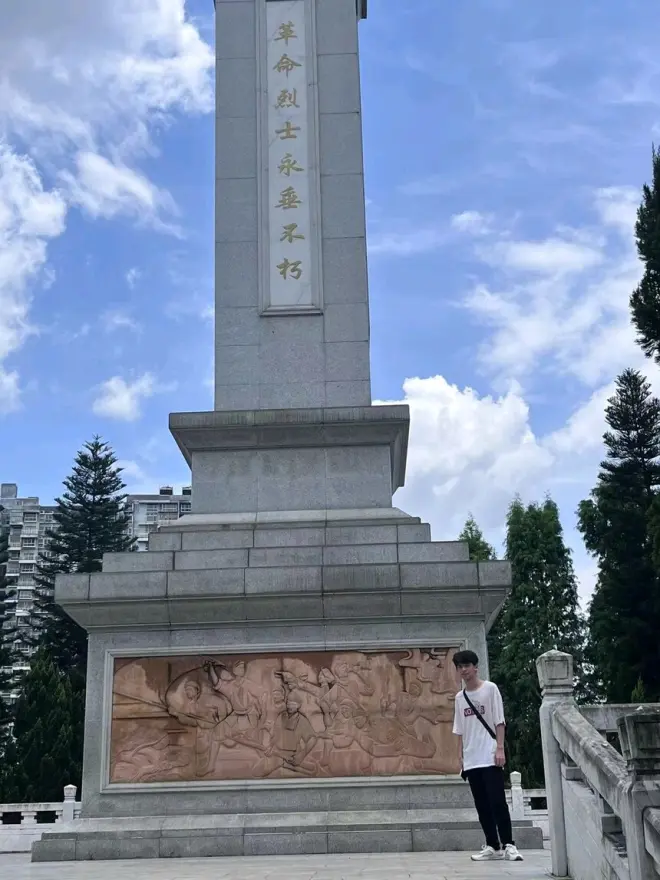 为了学习广西壮族自治区的红色革命文化,加强大学生的思想政治素养,2023年7月5日,四川农业大学青“码”逐梦实践团成员到达广西玉林的朱锡昂烈士陵园,开展为期一天的、以纪念烈士、学习革命精神为目的的寻访活动。 活动于当天上午开始,由四川农业大学青“码”逐梦实践团成员和其他随行人员在完成寻访规划和确保安全后,搭车前往玉林市人民公园并寻访革命烈士纪念碑。 本次活动,青“码”寻访团队成员参观了位于烈士陵园内部的展馆和其所在的人民公园,充分认识到革命的艰辛与革命的重大意义。踏入陵园门口,映入眼帘就有红色教育基地的扫码打卡活动,在完成打卡后,陵园小道两侧有着许多展示牌叙述着如朱锡昂等革命烈士的光荣事迹,同时也描述了陵园诞生的历史和意义,而陵园中展现的革命精神不止步于过去,更结合当下,陵园内“深入学习宣传贯彻党的二十大精神,奋力谱写中国式现代化广西篇章”的告示把红色革命文化和时代、地区相结合,深入人心,寻访成员从中体会到了革命的艰辛不易,也感受到革命志士们的英勇无畏精神和革命乐观主义精神,亦能感概先辈意志之坚定,在此感触下团队成员向纪念碑鞠躬。