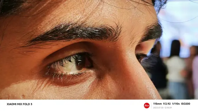 小米MIXFold3的照片画面动态范围很高,阴影和亮部的细节都保留得很完整。 此外,小米MIX Fold3拍特写的效果也极为优秀,人物深邃的面孔,黑黄的皮肤,质感显得很好,就连不起眼的皮肤上的小细毛都能看的清清楚楚。