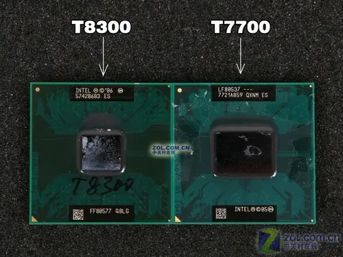 首批上市的Penryn双核处理器主频从2.1GHz~2.8GHz不等,我们ZOL笔记本频道在第一时间拿到了一颗2.4GHz的Core 2 Duo T8300,在Penryn家族中属于中端主流型号;此外,我们还找到了两颗现有的65纳米处理器T7300(2.0GHz)和T7700(2.4GHz)与之进行对比。通过测试,我们希望找到以下问题的答案: