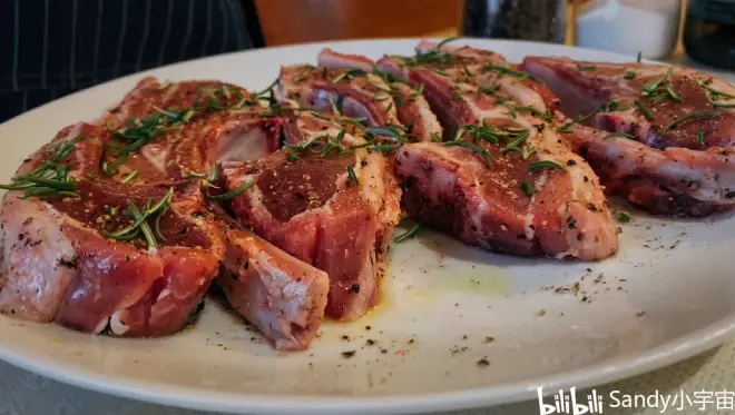 1️⃣材料准备 🧂海盐 🧄蒜瓣 🧂黑胡椒 🌱迷迭香 🧂橄榄油 🥩羊排 2️⃣烹饪步骤 👉羊排表面水分用纸吸干; 👉羊排双面撒上海洋和黑胡椒以及迷迭香碎,抹上橄榄油,腌制至少一小时⏰,腌的时间越长越入味;