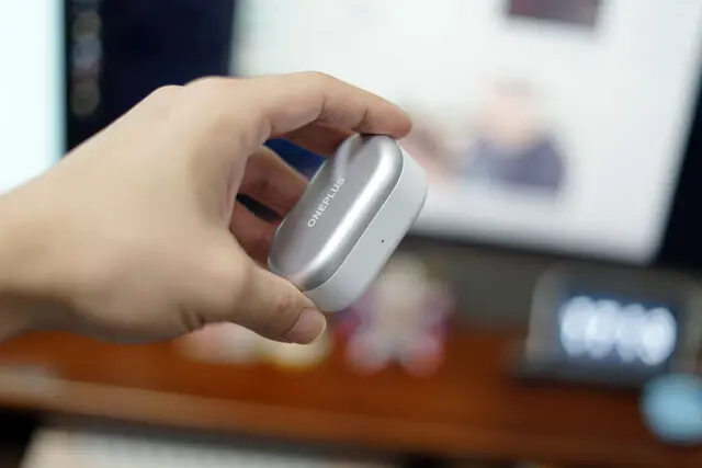 耳机整体的外观造型也与目前市面上绝大部分蓝牙耳机相似,充电仓采用的是类似鹅卵石的造型设计。不过,一加 Buds Ace耳机在配色上要略微有些不同,以我入手的独白配色为例,白+银的色彩组合更显质感,而且仔细看白色部分还会发现一些斑点,在金属漆与撒点材料的融合设计下,给人一种大理石的错觉感。