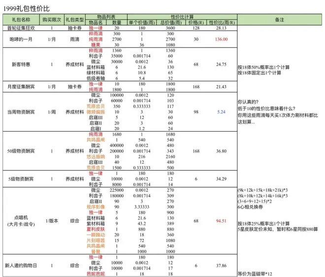大部分礼包性价比仅略高于首充双倍,考虑到有些礼包还有一堆能常规获取的材料,实际性价比可能还不如首充双倍;