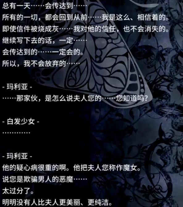 在白发少女的房间中,那面镜子一直留在她旁边,在镜子的下面有着一封没有被玛利亚篡改的信