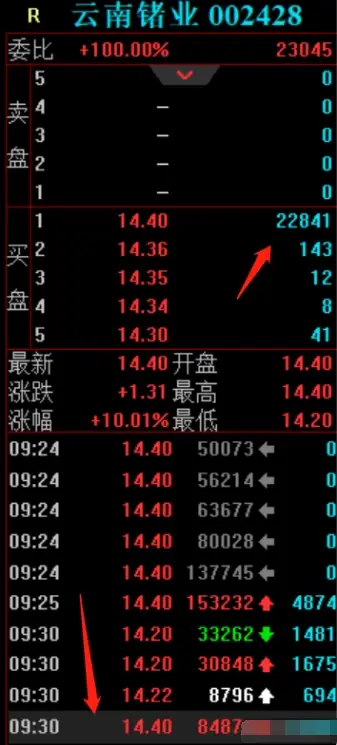 涨停板被打开后,获利盘涌出,泄压后,金开大道入场,直接掏出10万手,强行封板!(符合大佬之前的风格)
