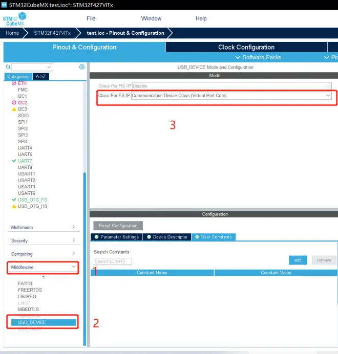 生成代码,编译然后ST-linkz正常烧录。连接USB出现如下错误: