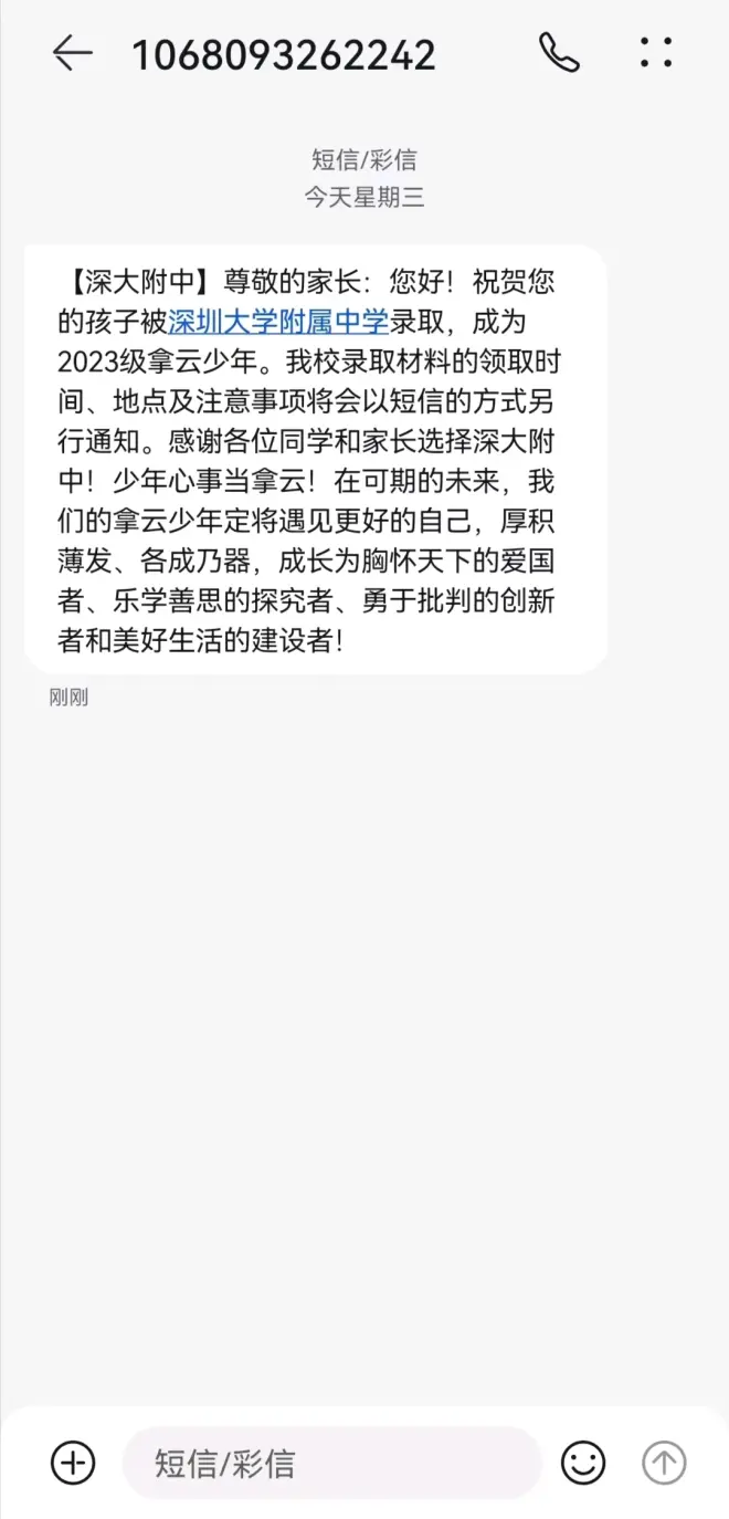今天是7月27日,深圳中考录取结果放榜日 我运气好,用了个指标挤进了深圳十大之内,本来还想着跟同学分享一下自己的快乐,却发现身边的人都在抱怨自己考的不行,通讯录里面没有一个能够跟我说一声“恭喜”的,发出去的喜讯都以攻击回复我,甚至于我老妈发的庆祝朋友圈也收到了“顾及下别人的感受,给他人一点喘息的余地”这样的留言,真的是令人不知所措。 上一次见面还在互相猜测能不能进同一所学校,以后一起约时间打王者的同学到了这个时候却没办法一起分享快乐,这落差让我瞬间产生了一种陌生的感觉,好像彼此间被拉远了 也许我在更高的平台上能遇见更好的朋友来分享快乐吧,如果正在暑假间的你也有类似的经历,那么我在这里给你道一声:祝贺,恭喜!