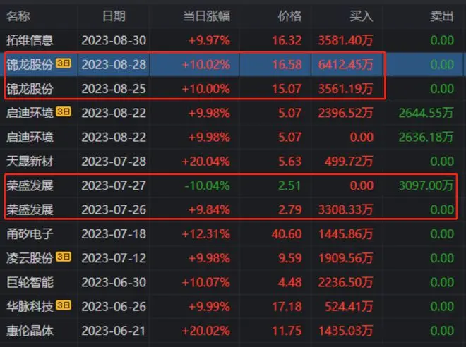打开上榜记录,该席位和作手新一同车锦龙股份。(在荣盛发展有一日游操作上榜)