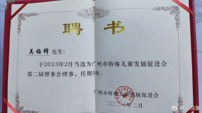 山高人为峰。2月15日,广州市特殊儿童发展促进会召开第二届会员大会第一次会议暨换届大会、第二届理事会第一次会议,广州天使儿童医院吴梅锋康复主治医师当选为广州市特殊儿童发展促进会第二届理事会理事,任期5年。