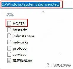 8、然后再进入“C:WindowsSystem32driversetc”路径下找到并以记事本的形式带打开“HOSTS”文件: