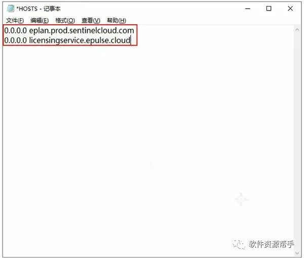 9、修改里面的内容为“0.0.0.0 eplan.prod.sentinelcloud.com” “0.0.0.0 licensingservice.epulse.cloud”,并保存退出,如下图: