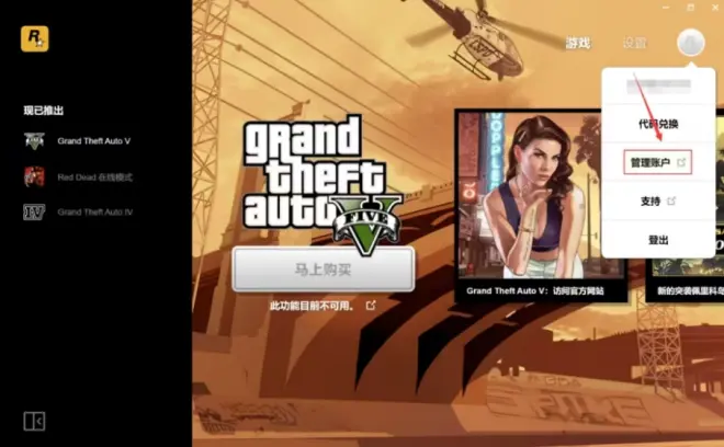 在使用加速工具后,启动R星客户端,登录你的账号。接着,点击“管理账户”。