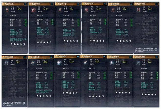 之后的表格防具顺序都是:胸甲,裤子,头盔,手套,鞋子哦