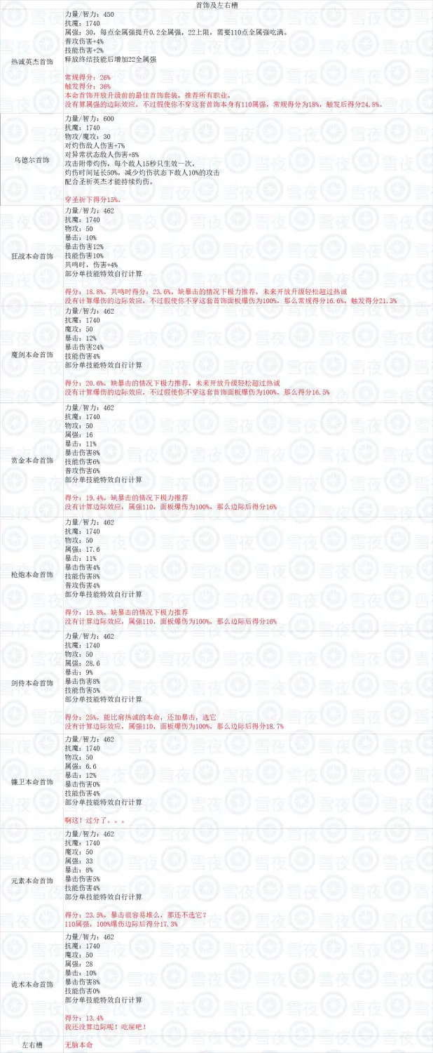 武器首饰和上下衣都没得选,头盔手套鞋子缺暴击的选暴击,不缺暴击的选爆伤。