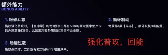 额外能力是普攻和回能,解除地方目标增益效果。