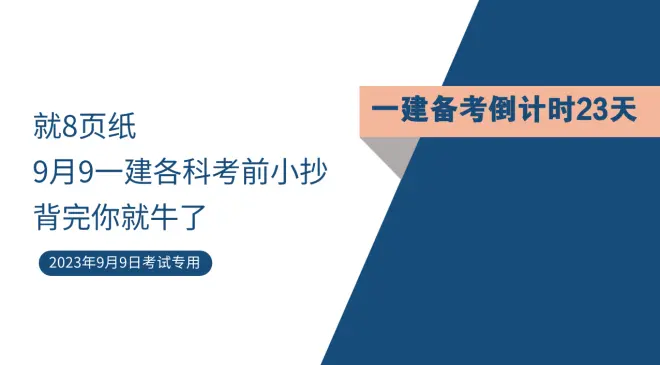 一建备考倒计时23天!现在备考一建当务之急就是要抓住这8页纸中的重点,每个知识点大概率都会考到,且是针对23年一建考试分析,都是从历年真题中归纳的高频考点,每年必考的知识点