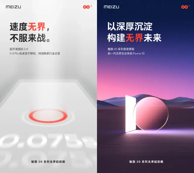 然后是魅族 18、18s 系列体验备受好评的超声波指纹解锁,此次魅族 20 系列上也升级到了2.0,识别速度提升到了0.075s,支持湿手解锁,就体验来说超声波指纹无疑是要优于光学屏下的,算是魅族 20 系列的一大产品加分项。下来是同样备受魅友期待的 Flyme 10 系统,通过魅族给予的「新一代无界生态系统」定义来看,Flyme 10 的升级重点会在跨生态互联体验这块。