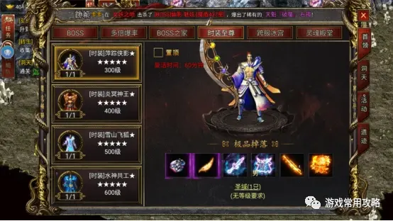 一:时装可以在时装至尊里面获得,里面有12个时装boss,打败后都有几率获得时装,时装至尊里面到时装特殊属性为:对怪,PK增伤4%。