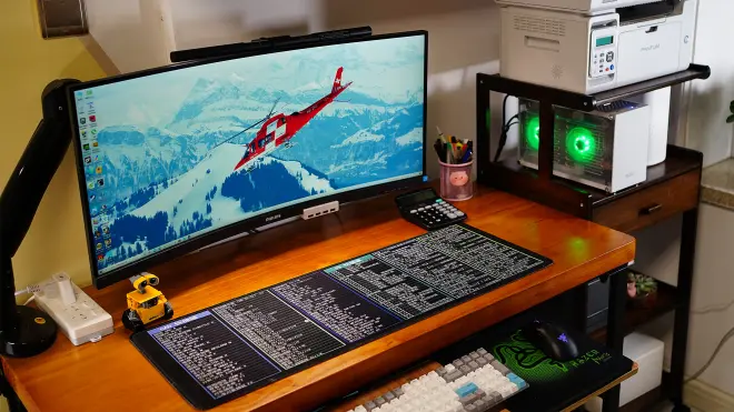 把家里老婆的工作平台升级了一下,由于新攒的是台ITX主机不大,所幸把它放到了旁边的打印机架子上,这样桌面也能进一步节省空间,没有主机的桌面似乎也变大了一点