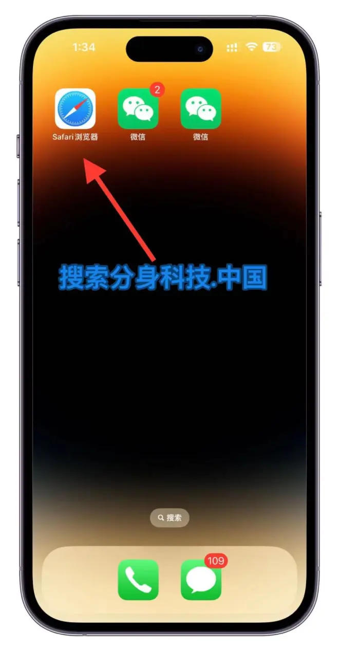步骤一:找到苹果手机自带的浏览器Safari。