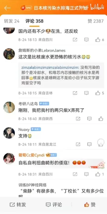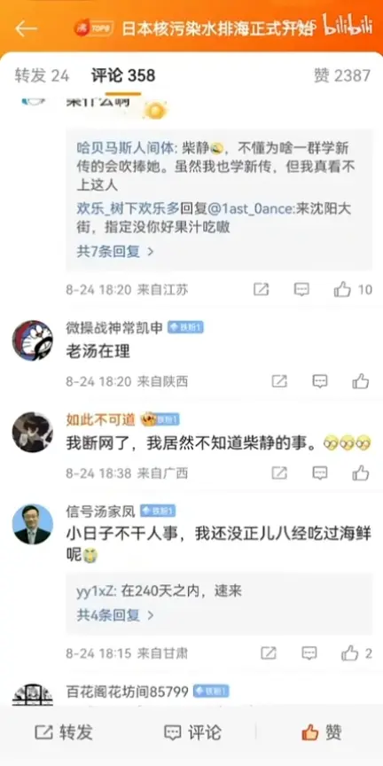 汤家凤对小日子核污水排海发微博表达看法的评论 (共
