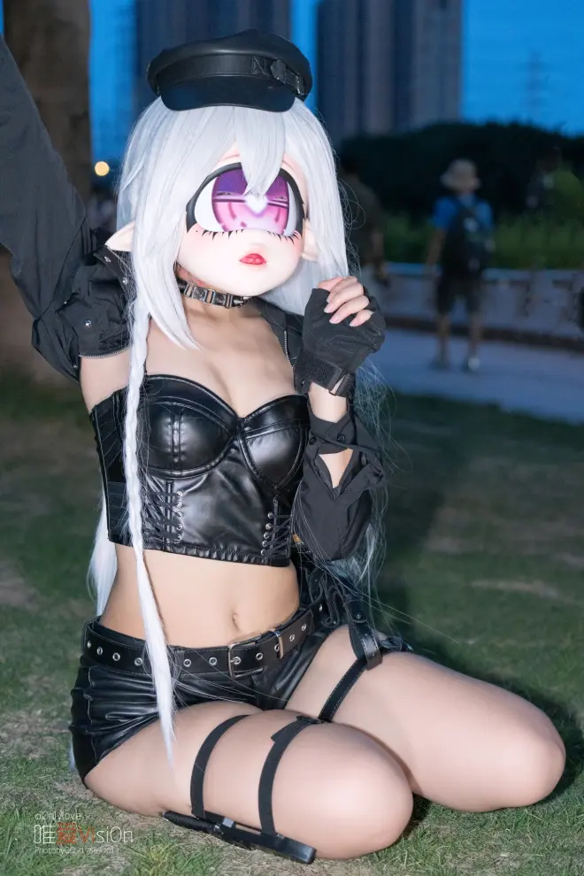 角色:自设漆皮衣皮裤绑腿皮靴头套版朋克女战士风