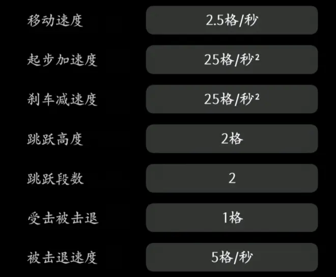 移动方式,移动速度,跳跃高度,受击被击退,动画