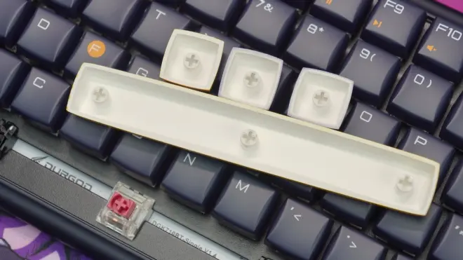 凯华Turbo静音红轴搭配安装的也是标准十字开口的键帽,方便玩家自行更换键帽,原装键帽做工比较扎实。