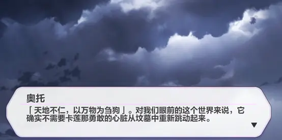 我们或许没有想到,曾说出过“没有卡莲,这个世界就没有意义”的奥托,一个一厢情愿的小丑和愚者,会在今天说出“这个世界或许真的不再需要卡莲的心脏重新跳动起来”。他已然清楚的知道,德丽莎、齐格飞、瓦尔特、幽兰黛尔、琪亚娜……他们其实都从各个方面继承了卡莲的理想与意志,他们也印证了人类的情感可以确实可以超越神明。