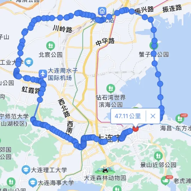 1、2号线成环并更名为环线,东港商务区4站划给7号线 站点顺时针依次为:大连北站(1、13)→后盐(3、5、13)→振连路(10)→龙头石→蟹子湾(4)→石化博物馆→港湾广场(7)→中山广场(6)→友好广场→青泥洼桥(5)→一二九街→人民广场(2)→联合路→西安路(1)→交通大学→辽师大→马栏广场(8)→湾家→红旗西路→虹锦路(6)→虹港路→周水子→辛寨子(4)→前革→中革(10)→革镇堡(2)→后革→卫生中心→体育中心(8)→南关岭→大连北站(1、13) 注:石化博物馆站建在填海区,到港湾广场站的跨海区间采用沉管法施工,原2号线港湾广场至会议中心站的区间变成环线与7号线的紧急联络线。