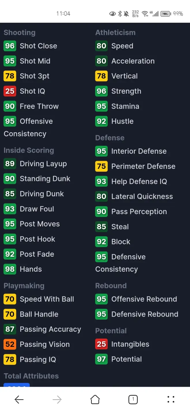 球员的能力值具体的查看网站是https://2kdb.net。最后,球员排名个人喜好比较浓厚,因此如果有其他的建议可以在评论区友好交流,麻烦不要口吐芬芳,大家都是文明人有什么不能好好讲的呢?