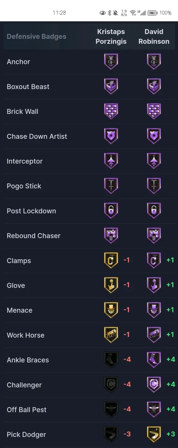 和海军上将就没什么好比较的了,因为海军上将的防守紫徽章将会成为一道难以跨越的鸿沟,就算波尔津吉斯的投射确实要更加出色,但是我更喜欢防守优秀的球员。