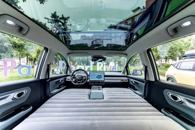 基于AEP2.0纯电平台打造的AION Y Plus,拥有远超同级的空间表现,前排座椅全平放倒秒变1.8m双人大床;前后排座椅全平放倒后直接呈现5㎡变态大空间,还可依托ADiGO SPACE智能座舱+14.6英寸中控大屏+大师级调音音响,打造冠军BUFF对战室、巡回小巨蛋、露营神车等新潮玩法,轻松玩转属于年轻人的Bigger House。