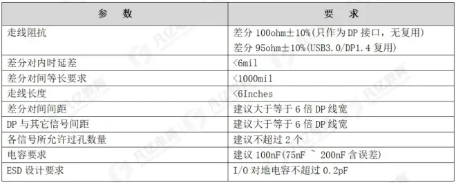 DP1.4接口有如下表1-1 PCB设计注意事项:
