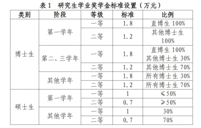 博士研究生第一学年为1.8万元,其他学年为2万元/年;硕士研究生为0.7万元/年。国家助学金在标准学制内,每年按10个月平均发放,7月、8月不发放。
