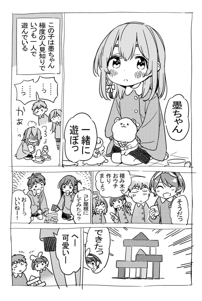 这个小孩叫小墨,非常害羞,总是一个人玩耍
