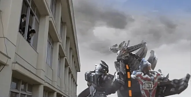 接着银河日光击杀超古(在设定上银河奥特曼第一系列的银河日光有着消去时空间的歪曲的破坏力,表现也是把覆盖子小光他们所在区域的时空歪曲连带超古一起消灭)