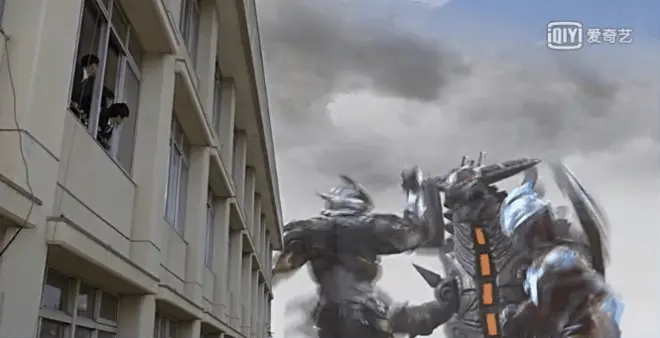 在逼停超古之后银河马上给了超古一腿,然后配合詹奈一腿一拳连击将超古推离校舍,此处物防表现并没有多强,接下银河近距离踢腿退一小步,但被银河一踹踹退两步。