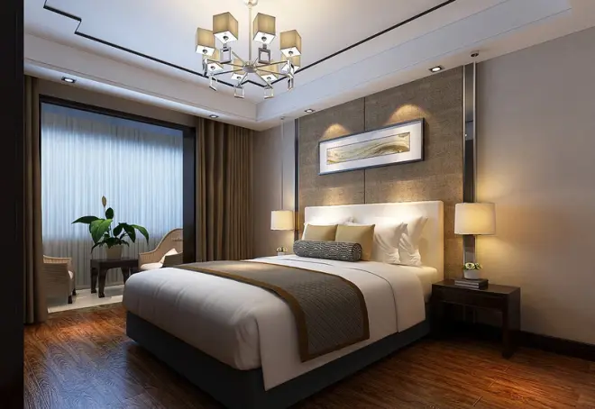 在这个庄重简雅的空间里,灰褐色的床头背景和莹白色的床品相得益彰,营造出一种宁静舒适的氛围。床头背景的灰褐色调与床品的莹白色调相互映衬,让整个卧室看起来更加和谐统一。同时,床头背景的设计也体现了主人的品味和生活态度,简洁而不失精致,让人感受到一种高雅的生活气息。