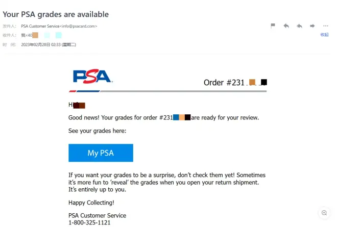» PSA 评级结束 速度还是很快的