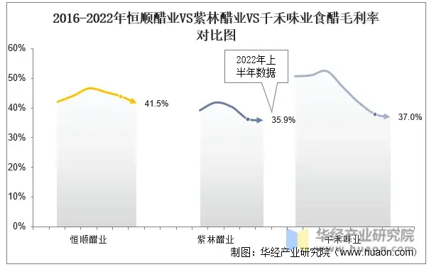 2016-2022年恒顺醋业VS紫林醋业VS千禾味业食醋毛利率对比图