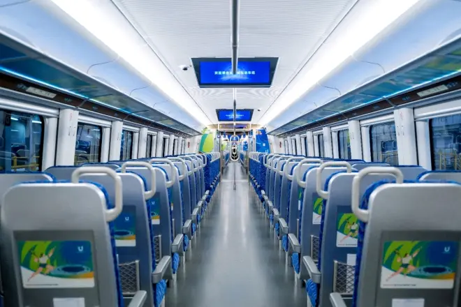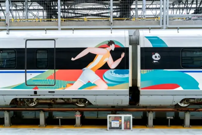 CRH6系的天府号改装而成,主要运营重庆,内江等地。列车采用大运会元素涂装,彰显成都青春靓丽迎大运的风采。外观是大熊猫和运动健儿奔跑的卡通形象,活力四射、充满动感;内部选用清爽的深蓝底色,车门贴、行李架装饰贴、头巾片上有许多奔跑、挥拍、投篮的形象,色彩明快、格外醒目。