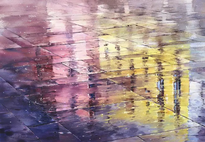 他一边说着,一边指指我。我回过神来,低头看向脚边的水潭。我明白他什么意思,眼睛浑浊的人,不会懂苦中作乐的无奈与心酸。