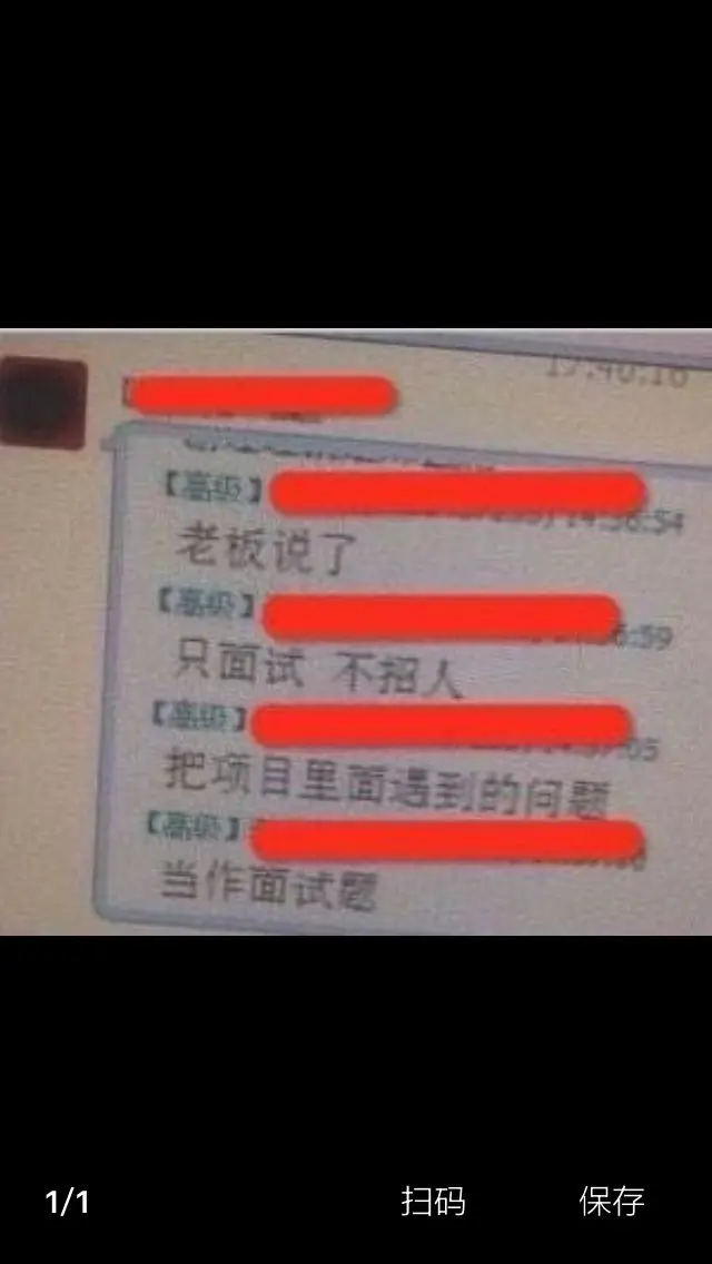 “老板说了,只面试,不招人,把项目里面遇到的问题,当作面试题”,通过免费的外部智慧,解决公司内部问题,不得不说这就是老板的格局与智慧。