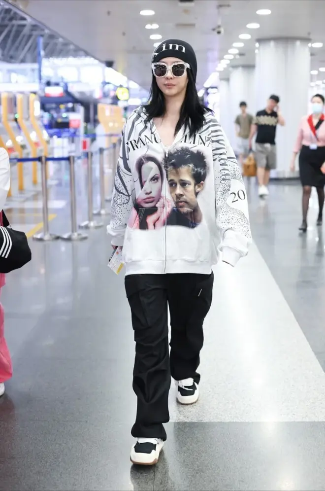 赵小棠在北京机场现身,这款人像印花卫衣太吸睛了!酷炫十足!