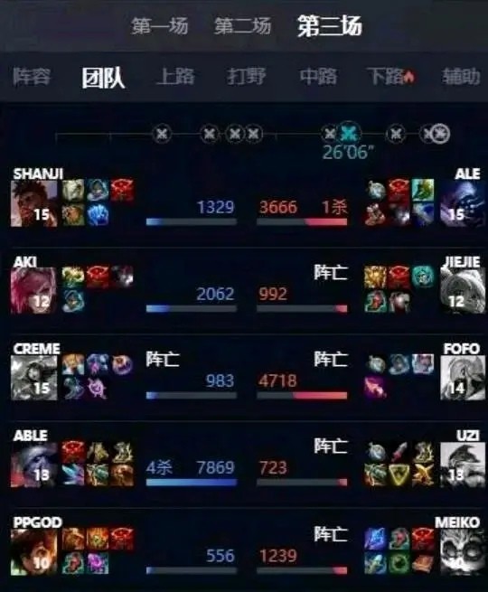 这样看下来,这一波团战uzi只打出了463的伤害后就被秒了,但是随后的团战数据面板中,这一波团战中,uzi的伤害居然达到了2940,这完全是不合理的啊,而且其他人的伤害也完全无法匹配,通过多方面的渠道看到,这波团战实际上UZI是打了723的伤害,而Able打了7869的伤害,也就是说明,比赛中显示的数据并不准切,这是偏袒还是数据计算错误呢?对此各位觉得嘞?